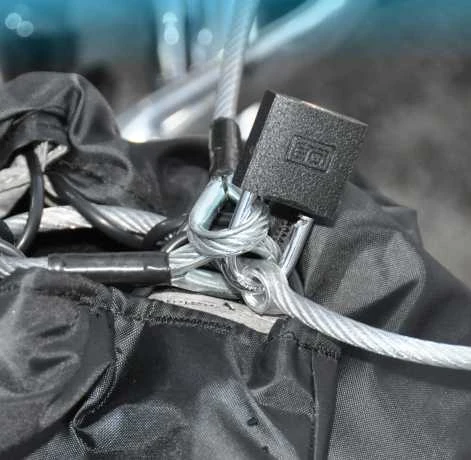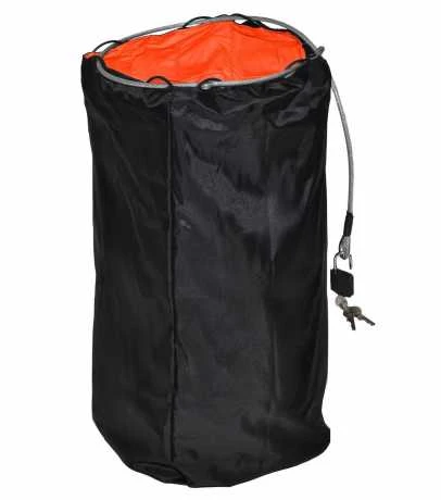 Abschließbare Helmtasche zur Befestigung am Bike. Mit dem Deemeed Helm Bag erspart Ihr Euch unnötiges Herumtragen von Helm und Handschuhen. Durch ein Netz aus Stahldraht im Inneren werden größere Gegenstände wie Helme effektiv gegen Diebstahl geschützt.