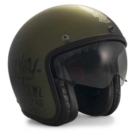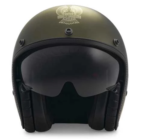 Hervorragender Schutz mit einem Hauch von militärischem Stil – das bietet unser Surplus X14 Sun Shield Three-Quarter-Helm. Er ist EU-zugelassen und besteht aus vorimprägniertem Fiberglas mit einem Micro-Lock-Schnallensystem, einer einziehbaren und kratzfesten Sonnenblende und einem herausnehmbaren, feuchtigkeitsableitenden Innenfutter. Dank der BOOM! Audio 20S Bluetooth®-Kompatibilität können Sie Ihren Kurs verfolgen, in Verbindung bleiben und zu Ihrer Playlist abrocken. Das unverwechselbare, erdfarbene Design ist authentisch Harley-Davidson.