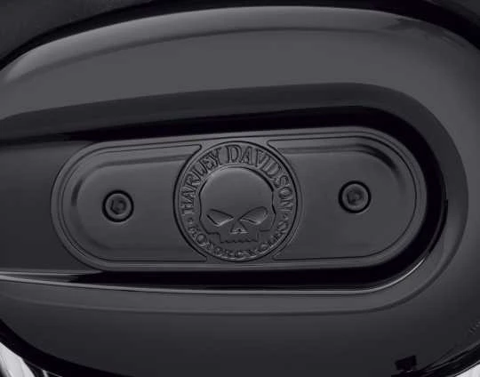 Die Willie G Skull Collection wechselt auf die dunkle Seite. Völlig in Schwarz getaucht, verleihen der Totenkopf und der Harley-Davidson Schriftzug dem Bike eine dunkle Note.