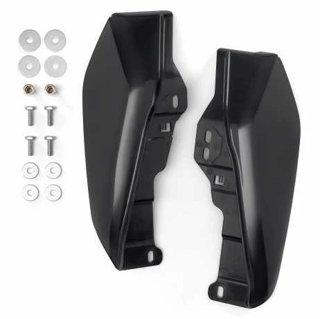 Mid-Frame Air Deflectors werden am Rahmen unterhalb des Sitzes befestigt und leiten die Wärme vom Fahrer weg, um den Komfort bei heißen Sommerfahrten zu verbessern. Entwickelt für eine nahtlose Passform zwischen dem Motorradrahmen und den Seitenwänden.