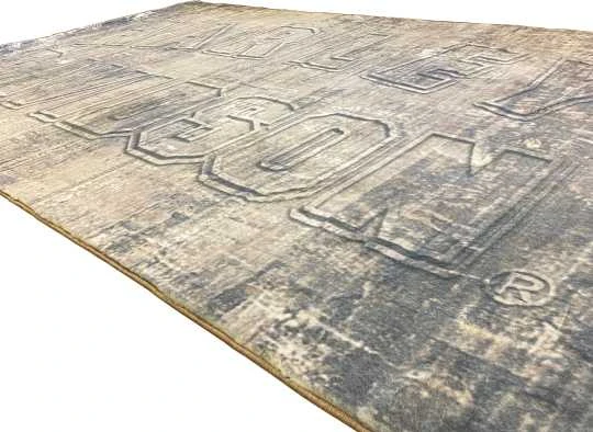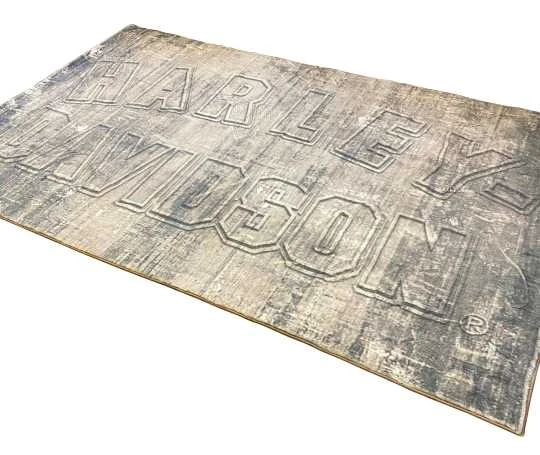 - Großer grauer Acrylteppich mit geschnitztem Harley-Davidson-Logo.