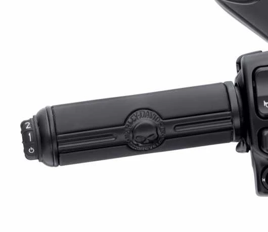 Diese thermostatisch gesteuerten, beheizten Handgriffe ergänzen die Hand- und Fußbedienung der Willie G® Skull Collection und sorgen dafür, dass Sie sich auch bei kühlerem Wetter wohl fühlen.